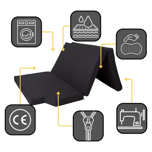 Materac wykonany jest z 3 części, połączonych ze sobą. Każdy element ma wszyty gruby, trwały i odporny na uszkodzenia zamek. Można swobodnie wyjąć piankę i wyprać lub wysuszyć materac. Po zapoznaniu się z ofertą proszę wybrać rodzaj i kolor tkaniny.