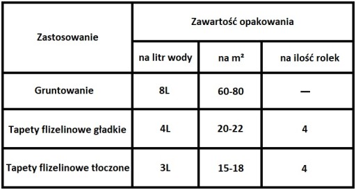 Klej przeznaczony do klejenia tapet winylowych oraz na flizelinie. Tapety na flizelinie nie odkształcają się, nie kurczą i nie rozciągają się podczas przyklejania. Umożliwiają szybkie i łatwe tapetowanie, bez uprzedniego zmiękczania tapety. Formuła kleju ułatwiająca nanoszenie kleju wałkiem bezpośrednio na ścianę bez pryśnięć i chlapania. Umożliwia łatwe usuwanie starych tapet na sucho.