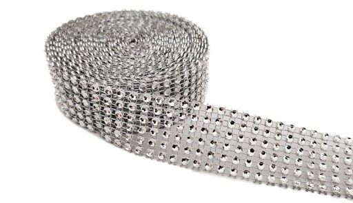 Dekoracyjna taśma imitująca cyrkonie idealna do tworzenia przeróżnych dekoracji. Sprawdzi się do dekoracji ślubnych, komunijnych czy świątecznych. Można nią ozdobić m.in. serwetki, świece, szklane elementy, zaproszenia, itp. Z powodzeniem można ją również wykorzystać do ozdabiania firan czy zasłon.