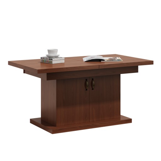 Stół ten został zaprojektowany w taki sposób, aby być jak najbardziej funkcjonalnym meblem. Blat stołu został wykonany z odpornego na wilgoć materiału. Stół jest oczywiście podnoszony i rozkładany na prowadnicy linkowej ciągnąc za jedną połówkę blatu druga rozciąga się samoczynnie Blat jest dzielony na dwie części, a w środek można włożyć tzw. 2 wkładki, które zwiększają długość stołu o 76 cm.Ławostół wykonany z płyty 18mm.Brzeg blatu pogrubiany do 36mm.Wkładkę chowamy osobno nie mieści się pod blatem