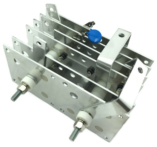 Mostki trójfazowe mają pięć konektorów - PLUS, MINUS, oraz trzy konektory wejściowe do których podłączone są grube przewody z transformatora głównego. W takim przypadku ilość płyt aluminiowych to najczęściej trzy lub sześć.