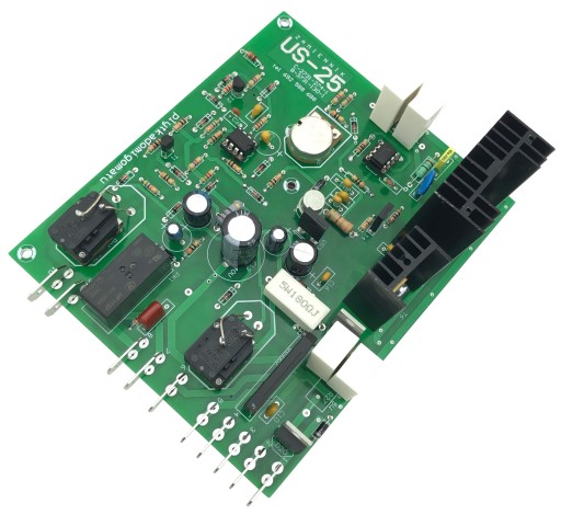 Najistotniejszą zmianą jest nowatorski system sterowania napędem - swego rodzaju "hybryda" :) - w pierwszych wersjach płyty US-25 posiadały jako element wykonawczy (sterowanie napędem silnika i jego hamowaniem) - tranzystory bipolarne (mówiąc w uproszczeniu - starego typu tranzystory, wrażliwe na przeciążenia, bardziej się grzejące pod obciążeniem - dlatego płyta miała duży radiator, ale z kolei były odporne na przepięcia w sieci, skoki napięcia itp.). Później stosowano w nich tranzystory MOSFET (zarówno w układzie hamulca jak i napędowym). Tranzystory mosfet - w uproszczeniu mówiąc - są znacznie nowocześniejsze - zdecydowanie mniej się nagrzewają (w tego typu zastosowaniu) zapewniają zdecydowanie lepszy moment obrotowy dla silnika (jest mocniejszy) - i są znacznie mniej wrażliwe na przeciążenie - ale mają też wadę - są wrażliwe na przepięcia, skoki napięcia czy różnego rodzaju zakłócenia elektryczne w okolicy jakiej pracują. Dlatego też w niesprzyjających warunkach - w takim zestawie dwóch MOSFETów gdzie jeden odpowiada za napęd a drugi za hamowanie - może zdażyć się - że podczas pracy silnika - przypadkowo - w wyniku zakłóceń sieciowych - na krótką chwilę załączy się tranzystor hamujący - powoduje to zwarcie (układ jednocześnie chce napędzać silnik i go zatrzymać) - i jest to najczęstszą przyczyną uszkodzeń tej płyty.