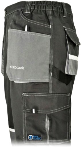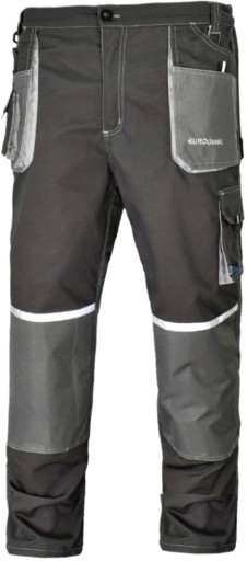 - 2 kieszenie kolanowe zapinane na rzep, pozwalające na zastosowanie wymiennych nakolanników. Kieszenie wzmocnione są tkaniną polyester Oxford 600D, która charakteryzuje się dużą wytrzymałością, odpornością na ścieranie i rozciąganie oraz wodoodpornością.