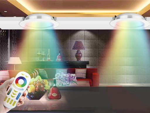 Panel świetlny MiBoxer MiLight SMART LED RGB+CCT WiFi FUT060, o możliwości wyświetlenia dowolnego koloru z palety RGB (16 mln kolorów) i dowolnego koloru białego z przedziału 2700-6500 K (a więc od białego ciepłego poprzez neutralny do białego zimnego) , o mocy 25W , sterowalny falami radiowymi WiFi 2,4 GHz .