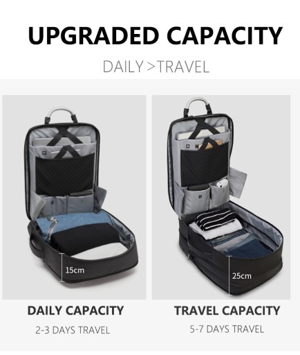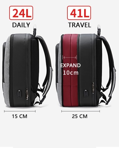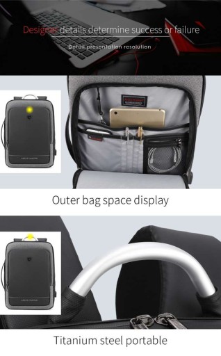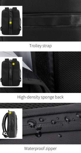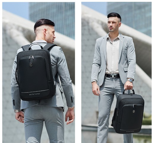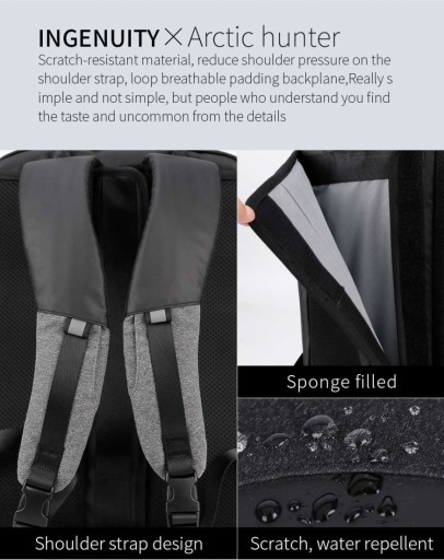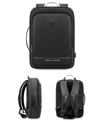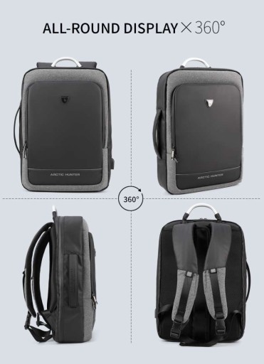 Nowoczesny plecak na laptopa marki Arctic Hunter o symbolu B00227L o minimalistycznym designie. Wykonany z wytrzymałych na zadrapania i wodoodpornych materiałów – Oxford i PVC. Główne zamki są podgumowane, dzięki czemu deszcz nie przesączy się do środka plecaka. Największą zaletą tego plecaka jest nietypowy sposób otwierania głównej komory – można ją otworzyć jak walizkę, co umożliwia nieograniczony dostęp do całej zawartości. W głównej komorze znajduje się kieszeń na laptopa w rozmiarze do 17,3” oraz kieszeń na tablet do 10” - obie zabezpieczone elastycznymi paskami, kieszenie na akcesoria oraz bardzo duża przestrzeń na zapakowanie ubrań. Pojemność plecaka można zwiększyć jednym ruchem - poprzez rozpięcie jednego zamka zyskujemy 10cm głębokości plecaka. Do tego plecaka z powodzeniem zapakujesz najpotrzebniejsze rzeczy nawet na 7-dniową podróż. Z przodu plecaka znajduje się kieszeń z organizerem na podręczne rzeczy, zmieścisz tutaj portfel, telefon, długopisy, dokumenty czy tablet. Tył plecaka wyłożony jest elastyczną gąbką o ergonomicznym kształcie, dzięki czemu zawartość plecaka jest chroniona przed uderzeniami, a plecak wygodnie układa się na plecach. Na tylnej ściance plecaka umieszczono nylonowy pas, dzięki któremu można umieścić plecak na rączce torby lotniczej. Szelki plecaka są płaskie, szerokie i uszyte w kształcie litery S, dzięki czemu plecak lepiej leży na ramionach, a ciężar jest rozłożony równomiernie. Na szelkach znajdują się dwie kieszonki na drobiazgi, oraz odblaski dla poprawy widoczności po zmroku. Plecak posiada również dwa solidne uchwyty (w tym jeden stalowy), dzięki czemu można wygodnie przenosić go w ręce jak torbę. Plecak wyposażony jest dodatkowo zewnętrzne gniazdo USB, dzięki czemu nie ma konieczności wyciągania power banka z plecaka, aby naładować telefon lub inne przenośne urządzenie. Plecak Arctic Hunter o symbolu B00227L doskonale sprawdzi się w każdych warunkach, zarówno na co dzień, jak i w kilkudniowej podróży, gdzie niewielkie gabaryty bagażu podręcznego mają duże znaczenie.