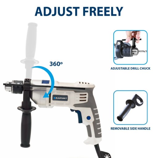 Profesjonalna wiertarka udarowa BLAUPUNKT przeznaczona do wiercenia we wszystkich możliwych materiałach.