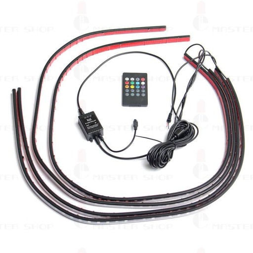 ZESTAW LED DO OŚWIETLENIA PODWOZIA SAMOCHODU REAGUJĄCY NA DŹWIĘK STEROWANIE: PILOT NA PODCZERWIEŃ Z BATERIĄ