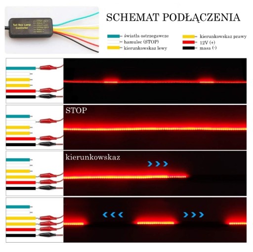 WIELOFUNKCYJNY PASEK LED O DŁ. 103 CM (ŚWIATŁO STOP, AWARYJNE, KIERUNKOWSKAZ)