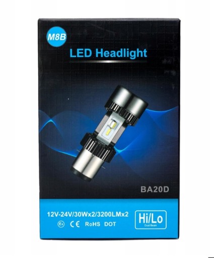 Żarówka BA20D ze światłami mijania i drogowymi dzięki rozmieszczeniu diód jak w tradycyjnej żarówce. Świeci dwa razy mocniej od tradycyjnej, co daje światło zbliżone do reflektorów ksenonowych.
