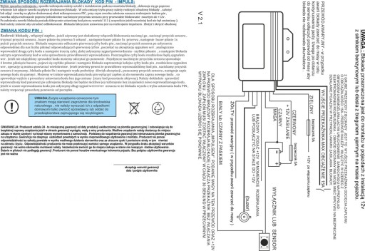 Aby jeszcze bardziej utrudnić rozbrojenie można użyć dodatkowego wejścia blokady aby podłączyć je pod dodatkowy przełącznik np. hamulec .