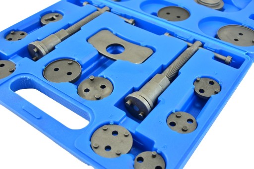 - Profesjonalny 18 częściowy zestaw do cofania (wyciskania) tłoczków w cylinderkach układów hamulcowych.
