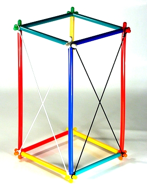 Pozwala on na zbudowanie figur płaskich oraz brył z grupy graniastosłupów. Załączone do zestawu gumki odpowiednio użyte wyznaczą wysokości i przekątne.