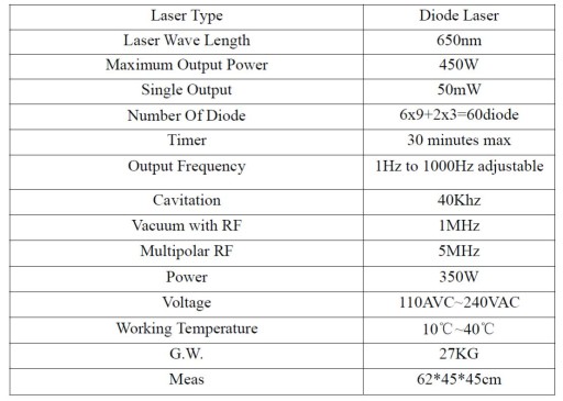 Urządzenie poprzez zastosowanie fali ultradźwiękowej rozbija złogi tłuszczu oraz cellulit.