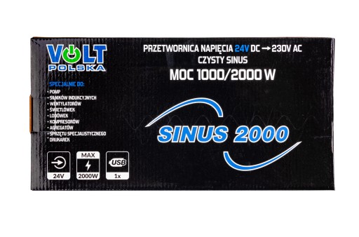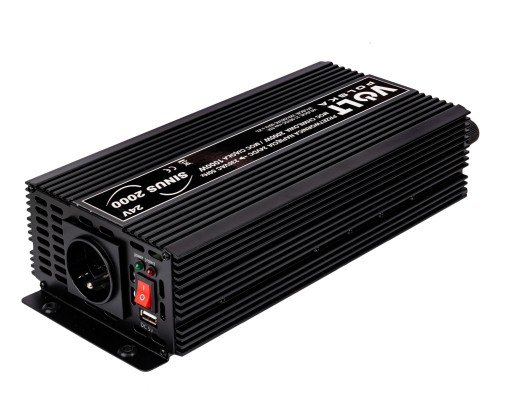 VOLT POLSKA SINUS 2000W z czystą sinusoidą, z tej przetwornicy otrzymamy identyczny prąd taki jak z domowego gniazdka elektrycznego.