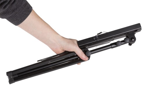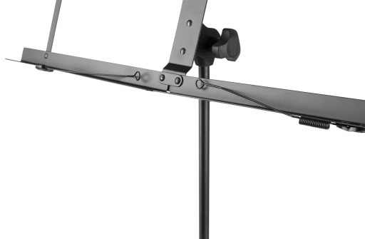 Statyw bardzo łatwo się składa, posiada specjalne uchwyty przytrzymujące nuty, a także wygodną torbę - pokrowiec do przenoszenia.