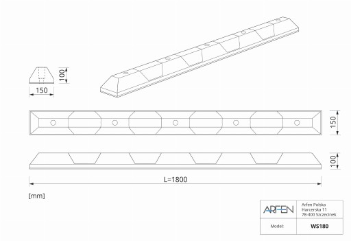 Przedmiotem aukcji jest: Ogranicznik parkingowy - odbojnica, separator 180 cm