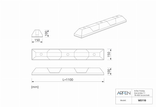 Przedmiotem aukcji jest: Ogranicznik parkingowy - odbojnica, separator 110 cm