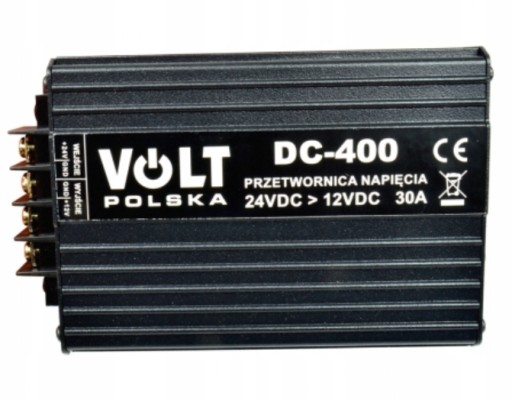 Elektroniczna przetwornica DC-400 24 / 12V 400W 30A to nowoczesne nisko zakłóceniowe urządzenie przeznaczone do obniżania napięcia instalacji samochodów ciężarowych z 24 na 12V. Przetwornica posiada szereg zabezpieczeń przepięciowych dzięki czemu idealnie nadaje się do zasilania odbiorników samochodowych typu: CB, GPS, smartfonów, radii, laptopów itp. W tym modelu zastosowano szereg usprawnień dzięki czemu udało się obniżyć temperaturę urządzenia w czasie pracy (chłodzenie aktywne).
