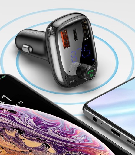 - Ładowarka samochodowa z transmiterem FM Bluetooth 5.0