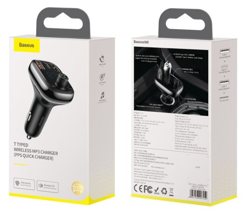 Baseus Transmiter FM Bluetooth 5.0 ładowarka samochodowa PPS Quick Charge QC4.0 Power Delivery USB Typ C / micro SD 5A 36W: