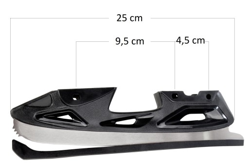W komplecie znajdują się osłony na część stalową łyżwy (na zdjęciach) oraz klucze umożliwiające samodzielną wymianę płóz w rolkach.