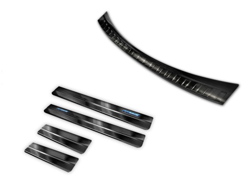- Ilość: 5 sztuk (4 nakładki progowe + 1 nakładka na zderzak)