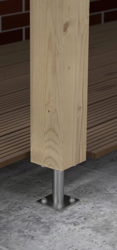 Podstawa stosowana do łączenia z betonem słupów drewnianych o kwadratowym przekroju. Zwarta konstrukcja umożliwia stabilne połączenie słupów o dużym ciężarze.