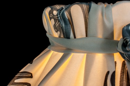 Każdy abażur jest ręcznie produkowany i szyty przez naszą firmę. Stelaż abażura wykonany jest z metalu i lakierowany proszkowo.