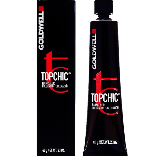 Goldwell Topchic to profesjonalna farba do włosów służąca do permanentnej koloryzacji. Efekt jej stosowania objawia się pięknym, świetlistym i trwałym kolorem. Dzięki zastosowaniu opatentowanej technologii ochronnej opartej na poddanych hydrolizie białkach pszenicy i Panthenolu koloryzacja jest bezpieczna i nie narusza struktury włosów.