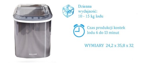 - Dzienna ilość wyprodukowanego lodu wynosi 10kg - 15 kg.