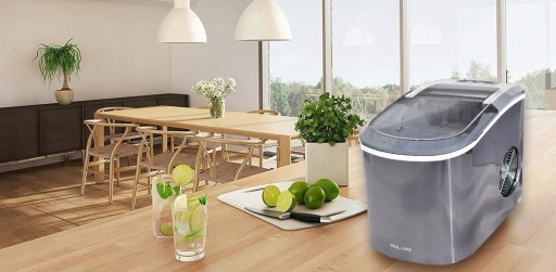 Kompaktowa, mobilna kostkarka, niezastąpiona do szybkiego i prostego przygotowywania kostek lodu.
