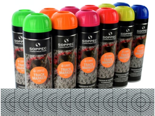Track Marker firmy Soppec to farba fluorescencyjna w aerozolu przeznaczona do wykonywania oznaczeń na placach budowy oraz do znakowania przy pracach geodezyjnych i pomiarowych. Z jej pomocą wykonamy widoczne, odblaskowe oznaczenia, podkreślając niebezpieczne strefy, zaznaczając pole pod wykop lub znacząc dokonane pomiary. Dzięki farbie Track Marker niewielkim kosztem, znacznie zwiększymy bezpieczeństwo na budowie i usprawnimy pracę. Aerozol stosowany jest w sytuacjach gdy długotrwałe oznaczenia nie są pożądane, utrzymując się na znaczonym obszarze do 3 miesięcy.