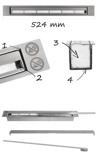 Biokominek wyposażony jest w jeden palnik liniowy o szerokości aż 524mm z certyfikatem bezpieczeństwa TüV.