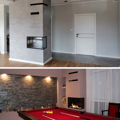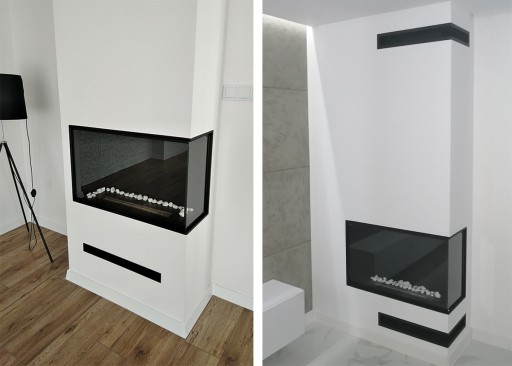 Pierwszy biokominek narożny z dwoma pełnymi szybami, biokominek do zabudowy.