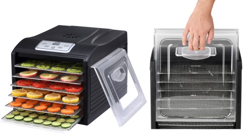 6 sit pomieści dużą ilość suszonych produktów. Wysokość pomiędzy sitami to aż 3.5 cm!