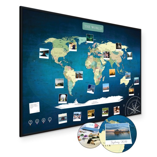 Zaznaczaj na mapie swoje zdjęcia obok miejsc w których zostały zrobione. Razem z mapą otrzymasz 20 zdjęć wydrukowanych w formacie 5×5 cm które od razu będziesz mógł przypiąć do mapy. Jeśli z czasem dojdą nowe miejsca w każdej chwili możesz zamówić u nas dodatkowy pakiet zdjęć, lub wydrukować we własnym zakresie!