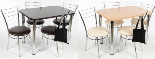 do wyboru kolory tapicerki na krzesła oraz kolory blatów do stołu