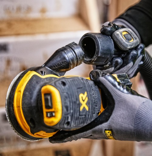 - Szlifierka mimośrodowa posiada wbudowane gniazdo odpylające umożliwiające bezpośrednie podłączenie do odkurzacza za pomocą systemu DEWALT AirLock
