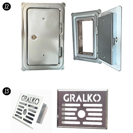 Umożliwiają rewizję komina ceramicznego oraz zabezpieczają wyczystkę, posiadają izolację oraz są żaroodporne i antywybuchowe. Drzwiczki posiadają uniwersalny zamek, dzięki czemu można je otworzyć w łatwy sposób np. monetą. Rozwiązanie to powoduje, że w awaryjnej sytuacji nie trzeba szukać dedykowanego im kluczyka