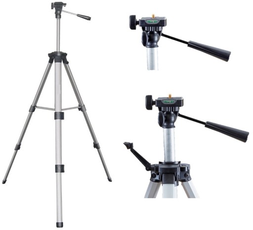 Solidny profesjonalny statyw z głowicą 3d i libellą o wysokości od 60 cm do 150 cm, do laserów krzyżowych, multi laserów 360º