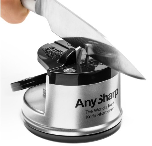 AnySharp classic srebrna to jedna z najprostszych i najbardziej uniwersalnych ostrzałek na świecie, umożliwiająca ostrzenie noży z ostrzami gładkimi oraz ząbkowanymi.