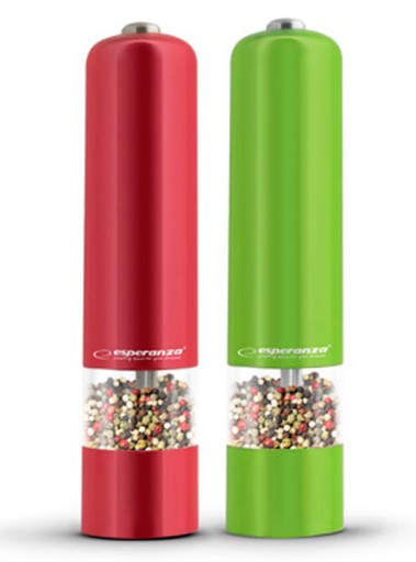 - Zasilanie: Każdy młynek - 4 baterie AA (brak w zestawie)