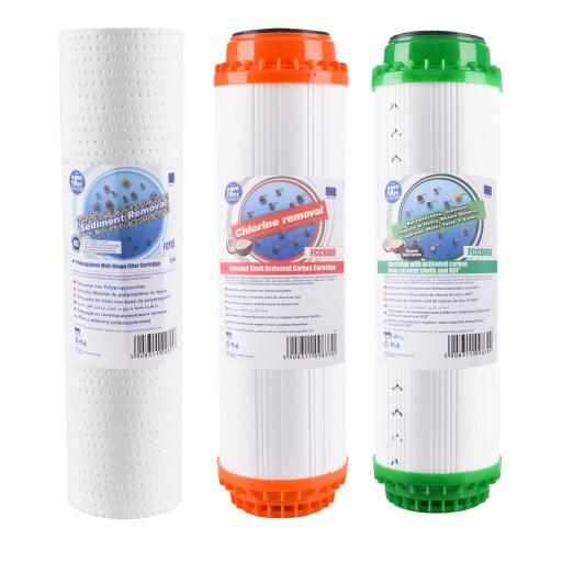 - Wkład węglowy FCCBKDF - Wkłady wypełnione węglem z łupin orzechów kokosowych oraz złożem KDF, certyfikowanymi przez NSF. Doskonale redukują chlor, substancje organiczne, pestycydy, poprawiają smak i zapach wody. Złoże KDF, redukuje stężenie żelaza oraz metali ciężkich (ołów, rtęć, arsen), a także wykazuje właściwości bakteriostatyczne, zabezpieczające złoże węglowe przed rozwojem flory bakteryjnej.