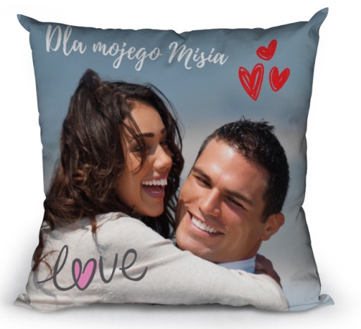 Poduszka jednostronna wraz z poszewką z dowolnym nadrukiem z jednej strony w rozmiarze 40x40cm.