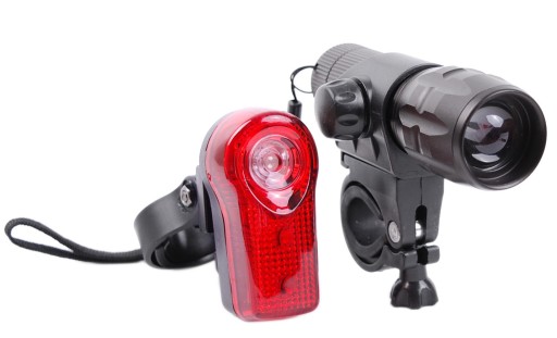 Komplet lamp rowerowych firmy Romet. Przednia lampka posiada jedną diodę LED SMD, wraz z soczewką, dającą mocne i skoncentrowane źródło światła. Tylna lampka bazuje na trzech diodach LED. Model ten został wyposażona w dwa tryby świecenia, stały i pulsacyjny. Za sprawą łatwego demontażu przednią lampkę można używać jako latarkę.