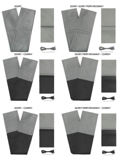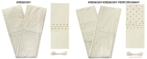 - pokrowiec wykonujemy z 6 kawałków skóry, posiada dziurkowane boki, przez które przeplatamy nitkę; dzięki temu pokrowiec bardzo łatwo i szybko możesz zasznurować na swojej kierownicy