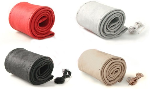 Skórzany pokrowiec do na kierownicę z sześciu kawałków skóry.