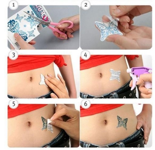 5.Po około 30 sekundach po namoczeniu odklej delikatnie mokry papier podkładowy od tatuażu. Tatuaż powinien dokładnie przylegać do ciała.