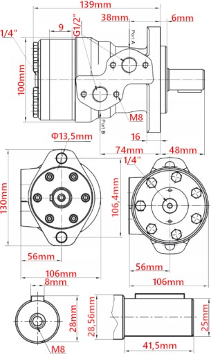 Wzmocniony silnik hydrauliczny grupy 2 50cm3