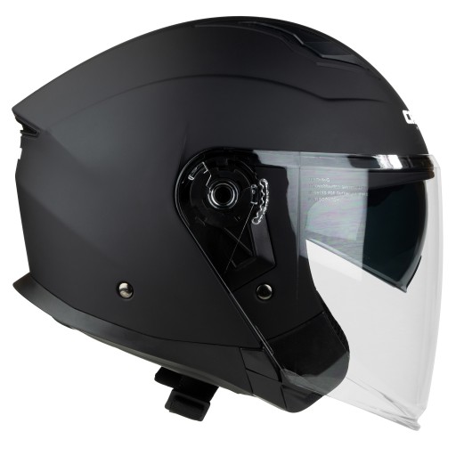 - długa wzmocniona szyba , nowa konstrukcja szyby po zamknięciu kask spełnia właściwości bezpieczeństwa kasku zamkniętego (pełny ,integralny)